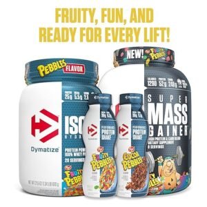 Dymatize, one of the world’s most trusted athletic nutrition brands, and Post Consumer Brands have teamed up to create a guilt-free mashup of two beloved cereals and an award-winning hydrolyzed 100% whey protein isolate: Dymatize ISO100 Fruity Pebbles and Cocoa Pebbles. The new Dymatize ISO100 Pebbles flavors are a fun and nutritious way athletes and kids at heart can enjoy a classic taste that never gets old.ISO100 is simply muscle-building fuel. Each serving contains 25 grams of protein and 5.5g of BCAAs including 2.7g of L-Leucine. Known worldwide for quality, taste and purity, ISO100 is produced to our highest quality standards. ISO100 is formulated using a cross-flow micro-filtration, multi-step purification process that preserves important muscle-building protein fractions while removing excess carbohydrates, fat, lactose and cholesterol. ISO100 is made with pre-hydrolyzed protein sources to ensure fast digestion and absorption.