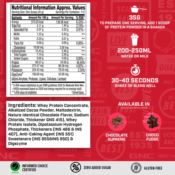Fuel your fitness goals with GNC Pro Performance 100% Whey Protein (Chocolate Fudge, 4kg), a premium-quality protein supplement designed to support lean muscle growth, faster recovery, and improved performance. Formulated with a blend of whey protein concentrate and isolate, this protein delivers essential amino acids required for daily nutrition and muscle repair.