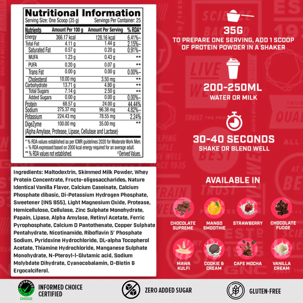 • High-Quality Whey Protein: Supports muscle growth and maintenance