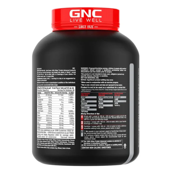 – GNC’s Advanced Whey being instantized is easily and quickly absorbable by your body for enhanced metabolism.