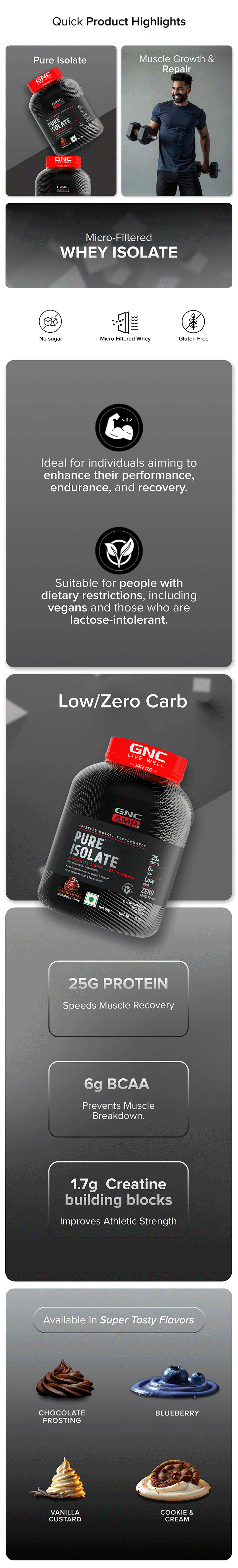 A. Protein is one of the core foundations for muscle & strength building, and amino acids are considered building blocks of protein. Everyone needs 22 essential amino acids to perform various body functions. GNC AMP Pure Isolate contains essential amino acids that cannot be produced in the body. If your body doesn’t get an adequate amount of amino acids, it leads to muscle breakdown. Even if you eat a protein-rich diet, adding a protein supplement to your routine will be greatly beneficial. GNC AMP Pure Isolate is very pure and fast-digesting, improving your exercise potential and preventing post-workout muscle breakdown.Q. Why Should You Opt for GNC Whey Protein?