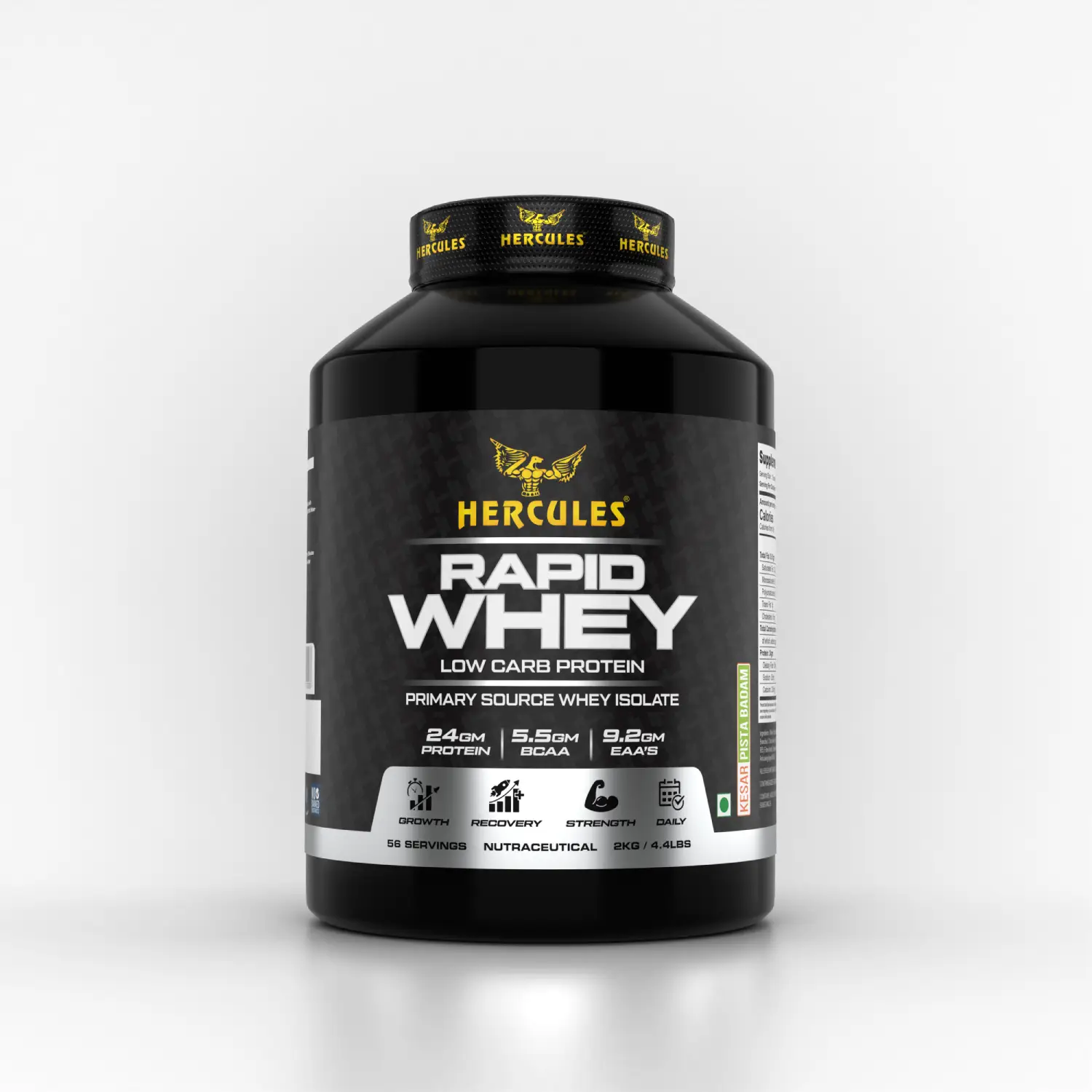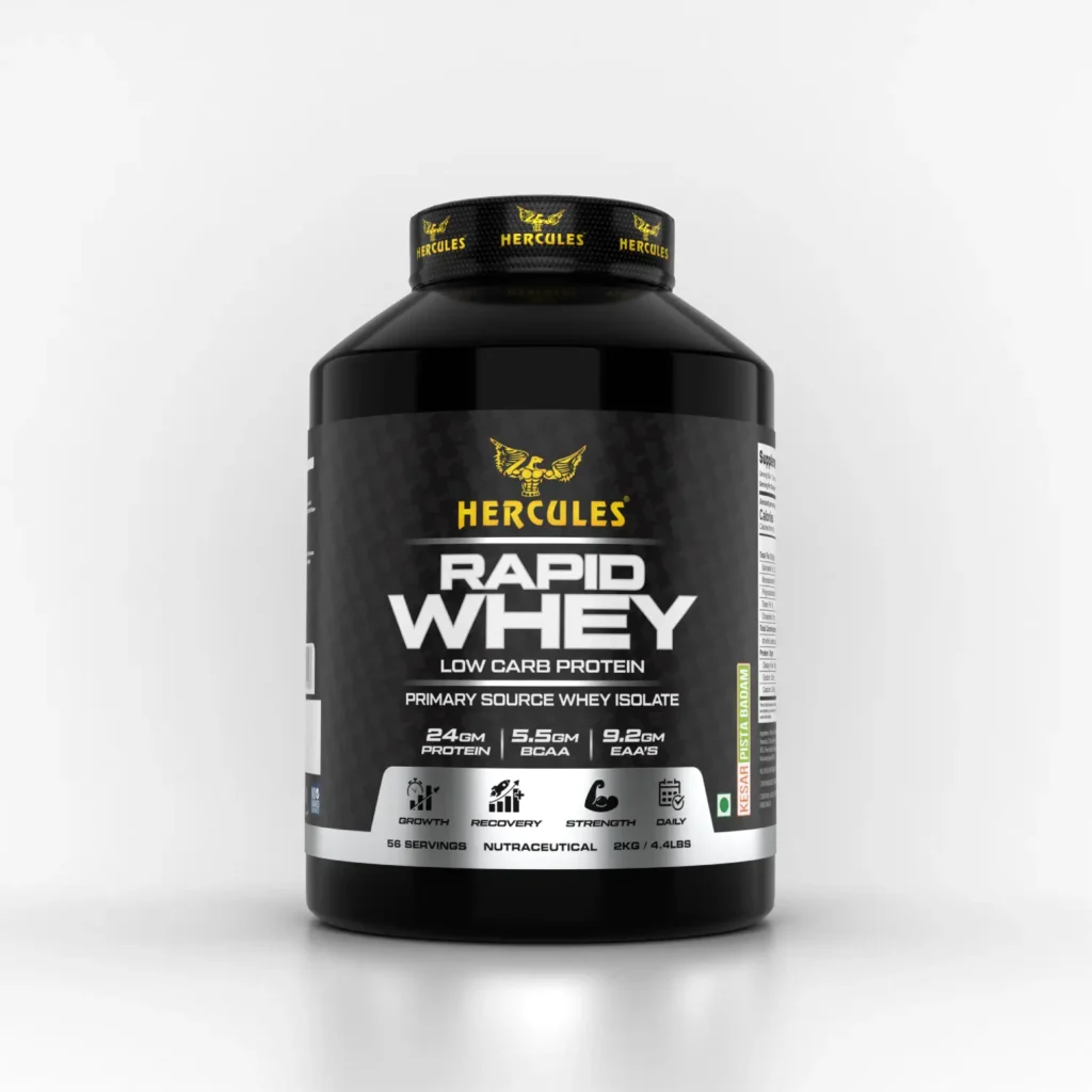Hercules Rapid Whey Low Carbs Protein is a premium, fast-absorbing whey protein supplement engineered for athletes and fitness enthusiasts. Formulated with a focus on high purity and low carbohydrate content, this 2kg Kesar Pista variant provides a delicious way to meet your daily protein requirements without unnecessary fillers.