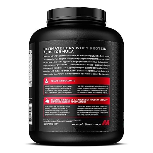 The brand with more than two decades of excellence brings you Nitro-TechTM Ripped, an advanced formula designed to help amp up the performance of fitness enthusiasts far and wide. Nitro-TechTM Ripped is our highly customized formula that combines high-quality whey protein with C. canephora robusta extract – a researched weight management ingredient – to support you in your quest to look your best when combined with diet and exercise. It’s our ultimate lean protein which is in low in fat when mixed with water and available to those who refuse to accept the status quo.