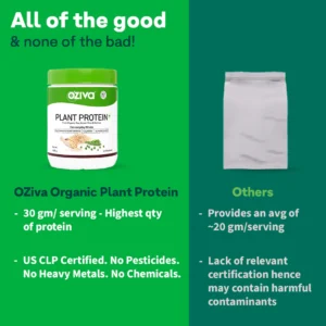 “OZiva Plant Protein has been my number one recommendation as it is a plant-based protein containing 30g Complete Plant Protein, 5.2 g BCAA, and 0 g sugar. Certified clean, this is a must-have for those deficient in their everyday protein intake. It’s great for daily fitness, building muscle mass, enhancing immunity, metabolism, and digestion.”