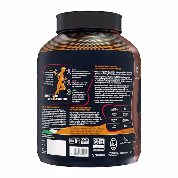 • Each Serving of Proburst Whey Supreme has 25g high quality protein from Whey Protein Concentrate and Whey Protein Isolate.